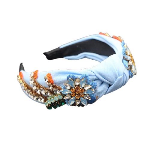 Une touche de fraîcheur avec le Headband Strass Fleuri Bleu Ciel