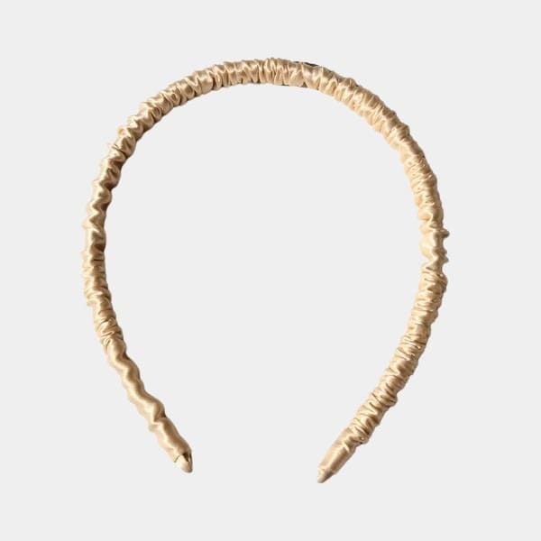 Un accent de sophistication avec le serre-tête fin beige en soie