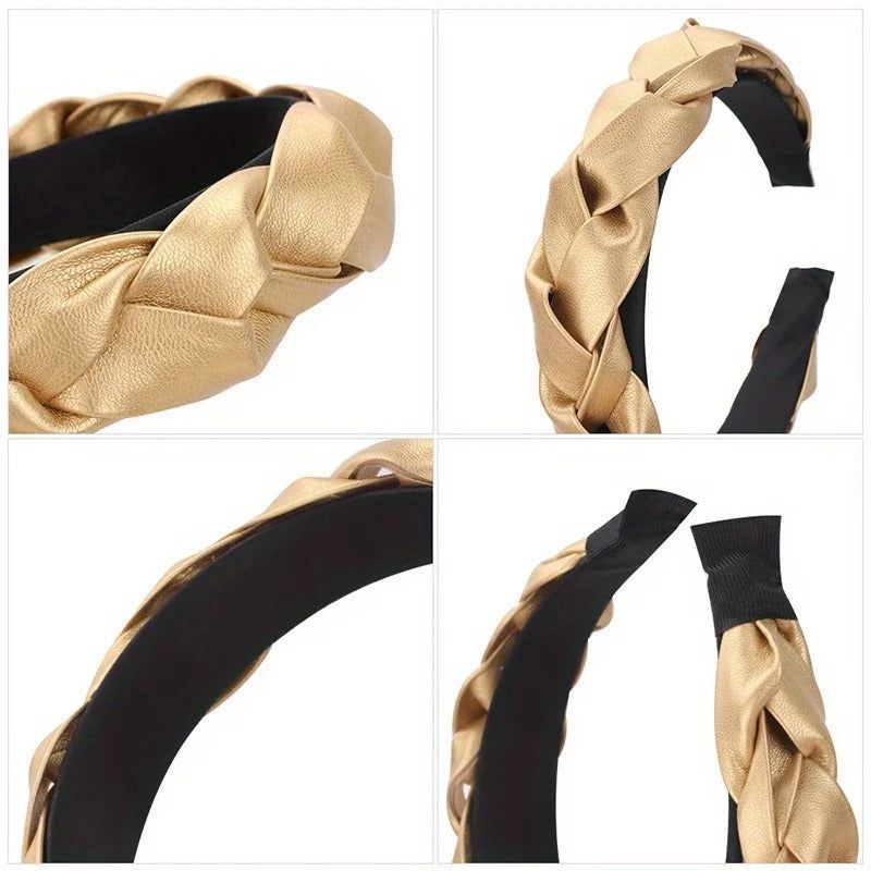 Un accessoire de mode incontournable Serre Tête Tresse En Cuir Doré