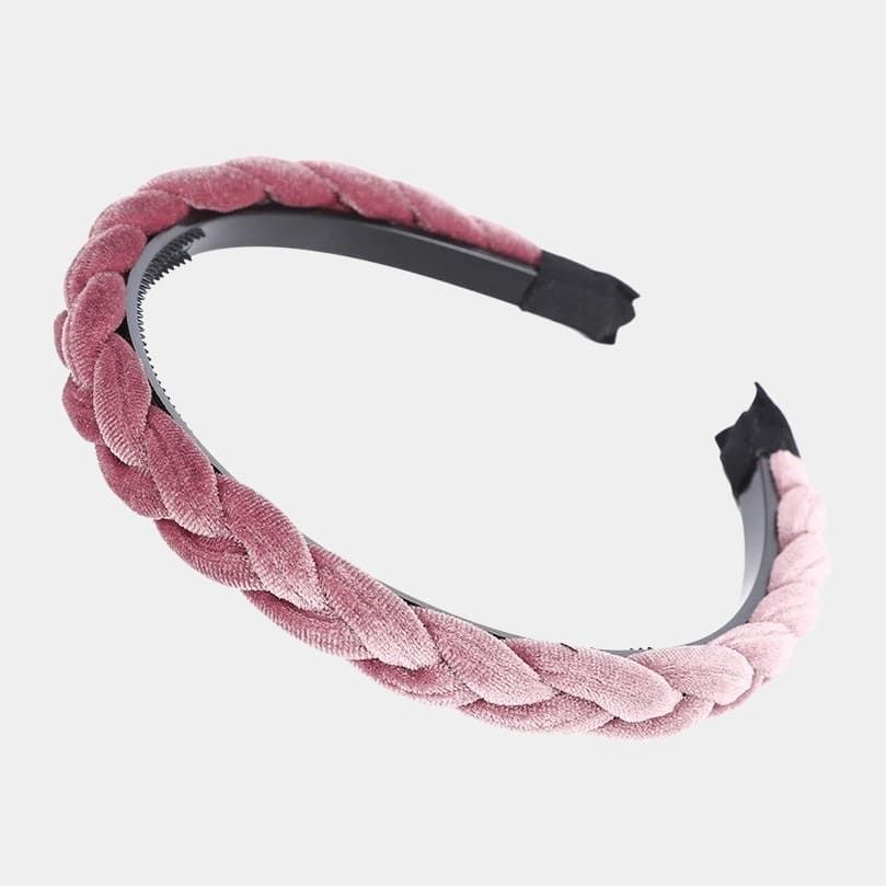 Un serre-tête tressé fin rose en velours pour exprimer votre personnalité