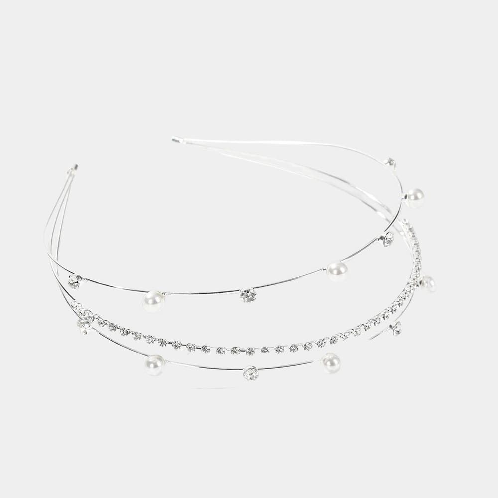Serre-tête Triple Argenté Avec Strass Et Perles