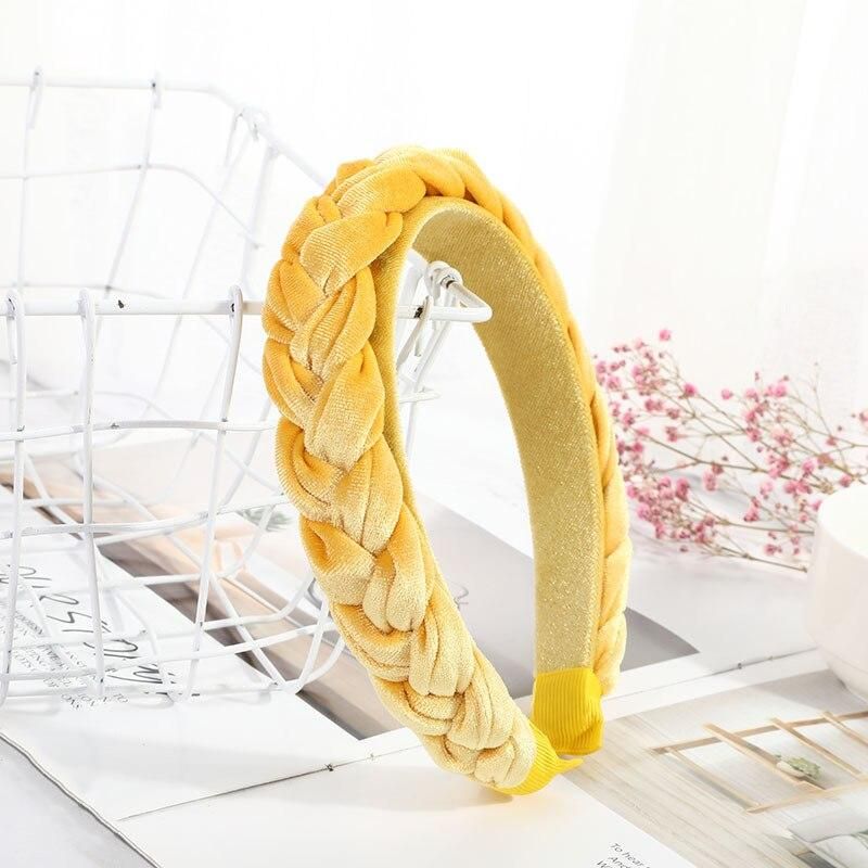 Serre Tête Velours Tressé Jaune : L’allié de votre style unique
